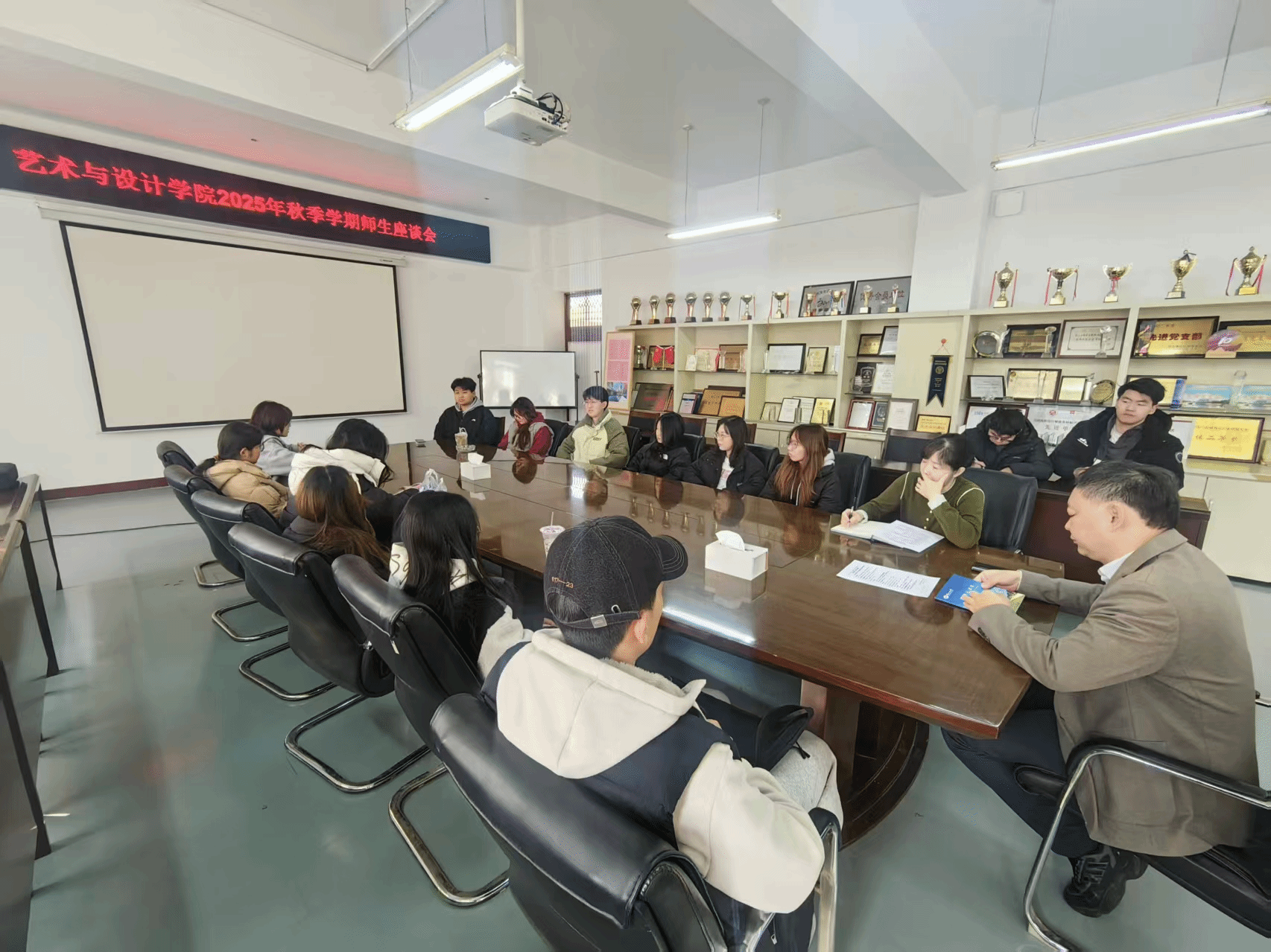 于2025年10月24日上午在艺术馆C305会议室召开凝心聚合力奏响“奋进曲”2025年秋季学期学生座谈会。学院赵琳院长、综合办公室宋立巍老师出席,辅导员卢文龙主持,23级本科空间环境1班全体同学参加。