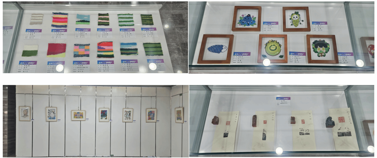 新图书馆一楼正式开展。本次展览集中展示了本学期多门美育公共选修课的优秀教学成果,涉及课程包括《非遗传承—剪纸艺术》、《美术鉴赏—织绣》、《摄影艺术》、《经典中国山水画临摹》、《美术鉴赏—梵高与后印象主义绘画》、《美术实践—轻松画插画》、《美术实践—漆艺》、《美术鉴赏—文人篆刻赏评》、《美术鉴赏—走进中国民居建筑》、《美术鉴赏—现代设计》、《中华优秀传统文化(篆刻)传承基地篆刻社团美育课程》等16门课程的学生作品。展览作品形式多样,涵盖绘画、设计、书法、工艺等多个领域,生动呈现了学校美育工作的丰硕成果。