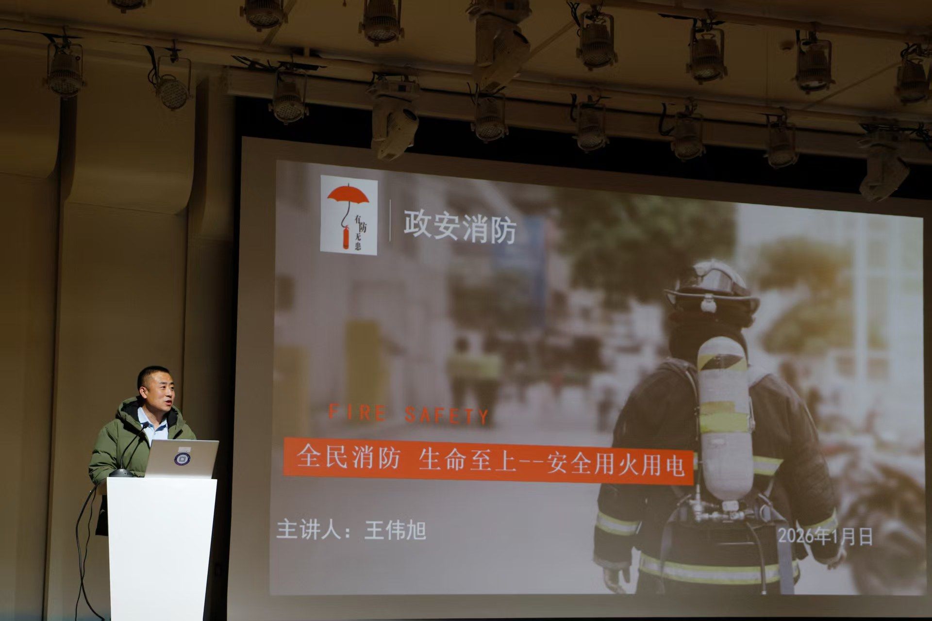 随后,开展了“全民消防 生命至上”安全教育讲座,特邀秦皇岛政安消防安全咨询有限公司应急管理宣教师、消防安全讲师王伟旭担任主讲。他结合近年来发生的典型案例,深入剖析了工作与生活中常见的安全隐患及其后果,重点讲解了火灾逃生的三个关键要素,同时针对冬季用火用电增多的特点,进一步强调了事前防范的具体措施,并补充了关于家庭配备必要逃生器材的专业建议。