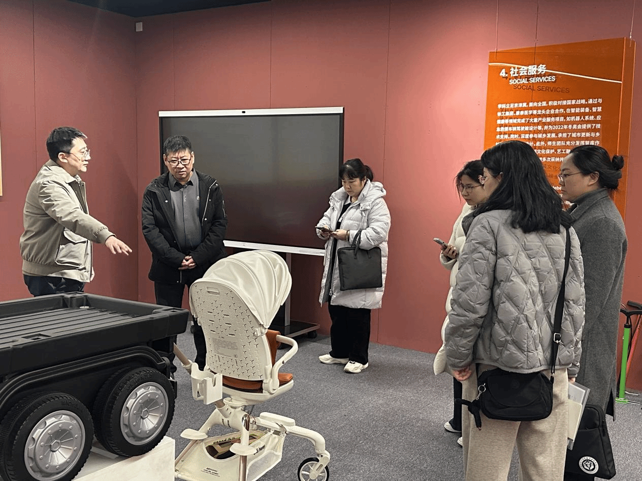 随后,工业设计系副主任卢颖系统介绍了专业教学改革成果,从师资建设、毕业生就业、竞赛获奖、产教融合等方面分享具体实践,并通过典型毕业设计案例展示人才培养成效。会后,参观了工业设计系工作室、实验室与实训基地,实地考察实践教学条件与学生成果。
