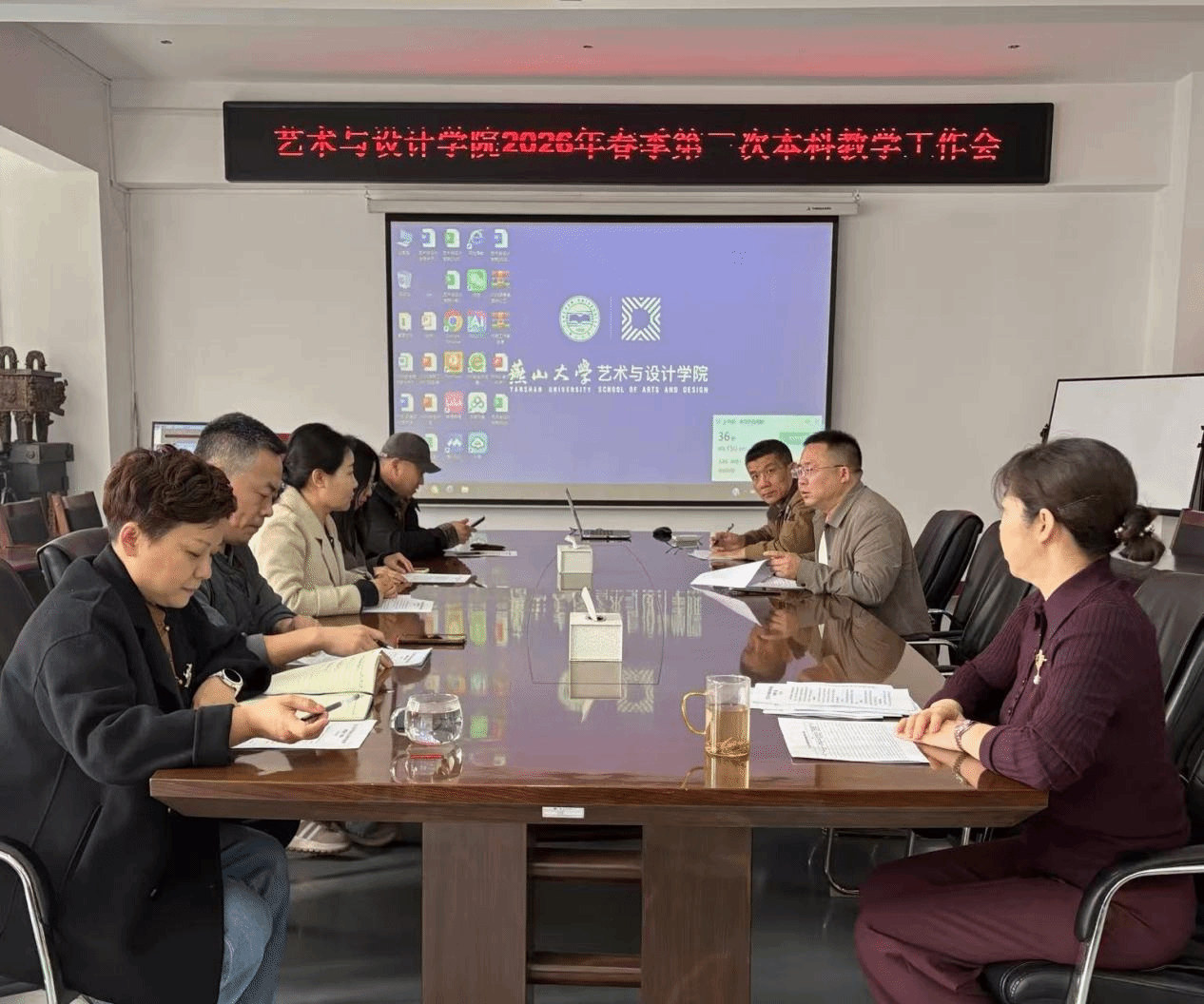 在美术馆C305会议室召开 2026 年春季学期第三次本科教学工作会议。各系部中心主任、教学秘书、学院综合办公室相关人员参会,会议由副院长王年文主持。