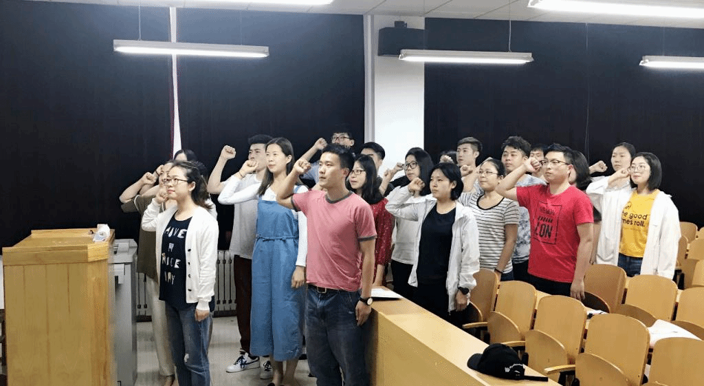 一次宣誓。面对党旗,全体党员进行了庄严宣誓,重温了入党誓词。在宣誓中党员用认真专注的眼神,坚定信念的拳头,意气风发的精神面貌,传递着学生党员的责任与担当。