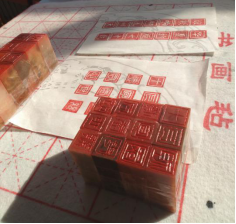 “花如解语还多事,石不能言最可人”。传统篆刻艺术,把意味无穷的书法镌刻到玉石之上,无言地传文达意,最后归于钤印在书画上的一枚朱红的印迹。活动最后,同学们对篆刻后的印章进行修整并进行钤印。活动最后,老师同学们齐心合力完成了“华夏新颜七十载,雄歌响彻九州天”、“七旬盛世,十亿同心”、“山河秀丽”、“祖国母亲,生日快乐”“多福”等篆刻作品。