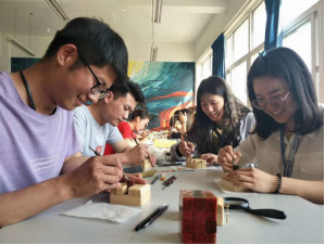在美术馆A306举办了“方寸之间·岁月雕琢——七十风雨邂逅百年芳华”篆刻体验活动。