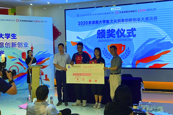 “2020年京津冀大学生文化创意创新创业大赛”由天津市海河教育园区管理委员会主办,旨在营造大学生文化创意创新创业氛围,激发创新创业活力,提升创新创业水平,为优秀创新创业作品搭建转化平台。来自京津冀地区43所高校的136支参赛团队参加了比赛活动。