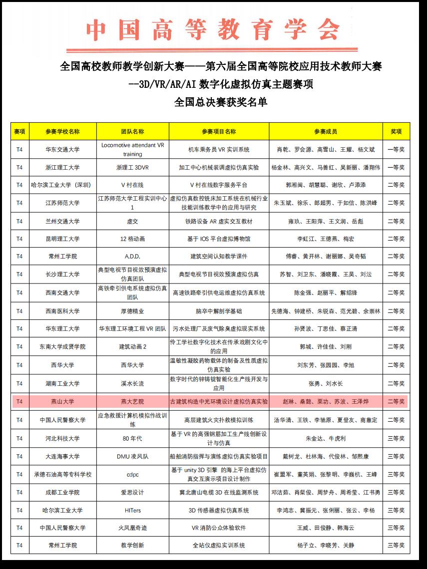 由中国高等教育学会主办的全国高校教师教学创新大赛—第六届全国高等院校工程应用技术教师大赛于本月三日刚刚落下帷幕,经过省赛选拔、国赛答辩等环节,我校哔咔漫画 赵琳教授带队的《古建筑构造中光环境设计虚拟仿真实验》项目获得了数字化虚拟仿真赛项全国总决赛二等奖的好成绩。