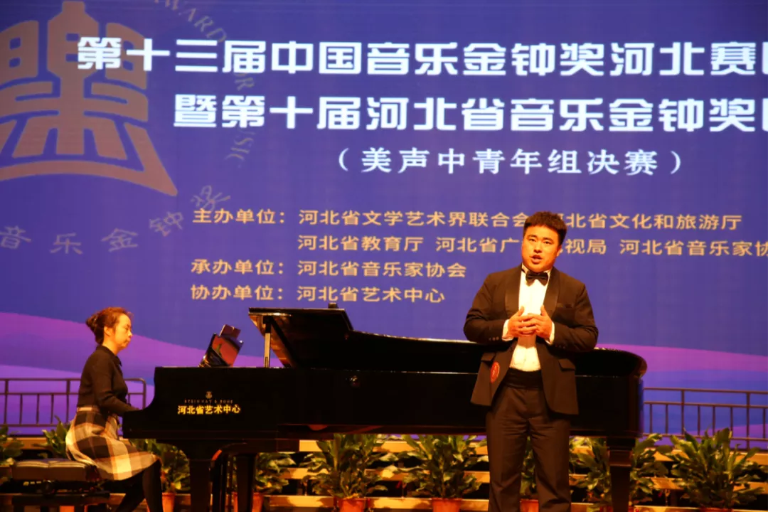 第十三届中国音乐“金钟奖”河北赛区复赛和决赛由河北省文学艺术界联合会、河北省文化和旅游厅、河北省教育厅、河北省广播电视局、河北省音乐家协会联合主办,河北省音乐家协会承办,河北省艺术中心协办。来自全省各高校艺术院系,省内艺术团体、部分国家专业院团的的百余名通过省内各地市音协组织的初赛选拔后在河北省艺术中心进行了复赛和决赛的激励角逐。我校两名青年教师和两名学生在高手云集的金钟奖舞台上脱颖而出摘金夺银充分展示了我校教师扎实的专业功底和优秀的教学水平。