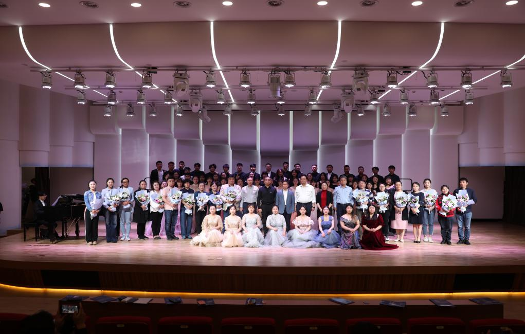 (校领导与音乐系师生合影)