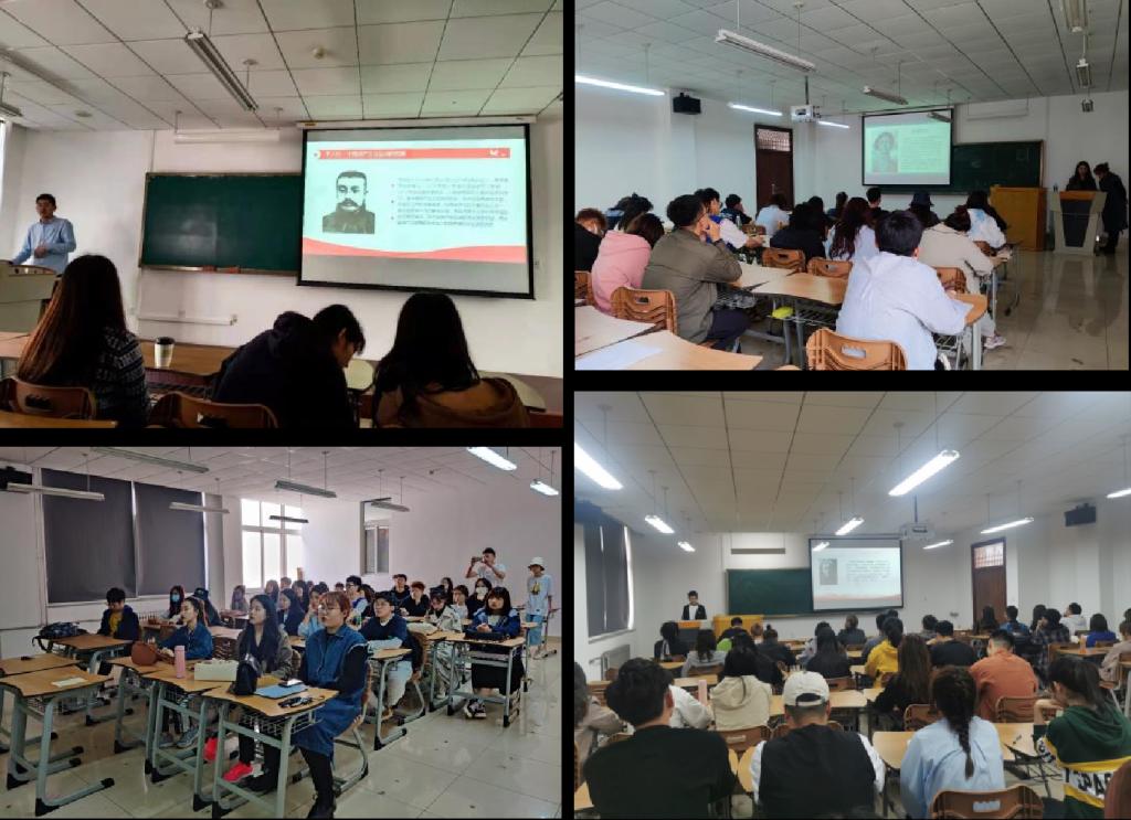 党日活动中,本科生第三党支部的周洋、王振洋同志带领同学们认真学习了长征精神、五四精神、红船精神;鉴赏了油画作品《启航》、音乐作品《江姐》,观看了爱国主义影视作品《觉醒时代》片段;本科生第二党支部牛锃钰同志带领大家赏析红歌《东方红》,学习毛泽东同志威武雄壮、气势磅礴的革命史诗《七律·长征》,观影《理想照耀中国》片段,以人带史,再现共产党人敢想敢为的担当精神;本科生第四党支部书记盖鸿章为同学们讲述历史人物林伯渠、方志敏的革命事迹,赏析美术作品《毛主席在文家市》,引导同学们追寻红色历史,传承红色基因。