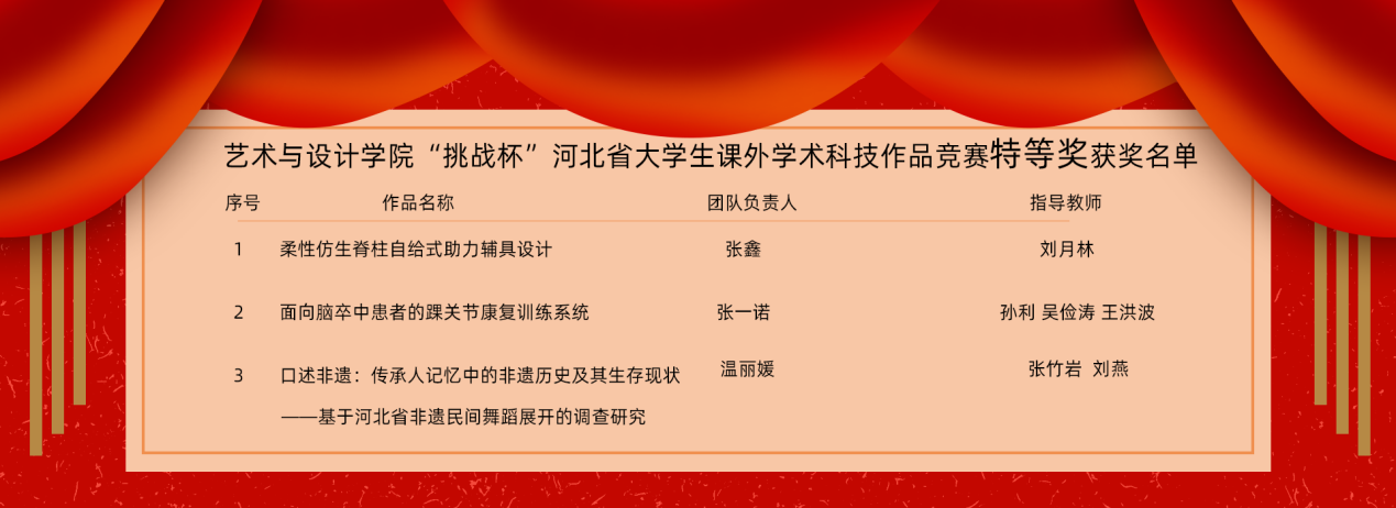 近日,2021年“挑战杯”河北省大学生课外学术科技作品竞赛最终结果公布,我院申报参赛的3项作品全部获得特等奖,这是我院在此项比赛中取得的最好成绩,实现了新的突破!