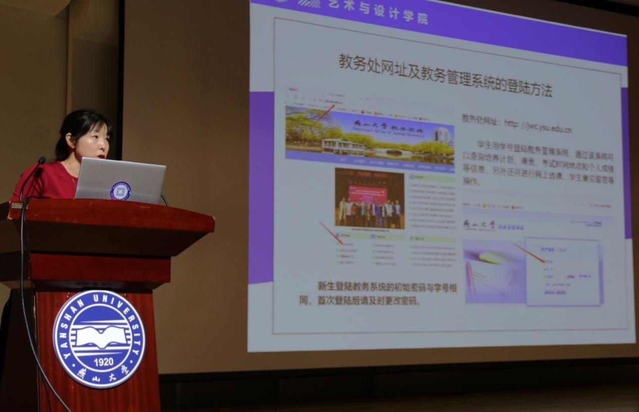 学院教学秘书宋立巍介绍了选课、学分等教务管理工作,鼓励同学们坚定理想信念,走进大学的青春岁月,成为更好的自己。