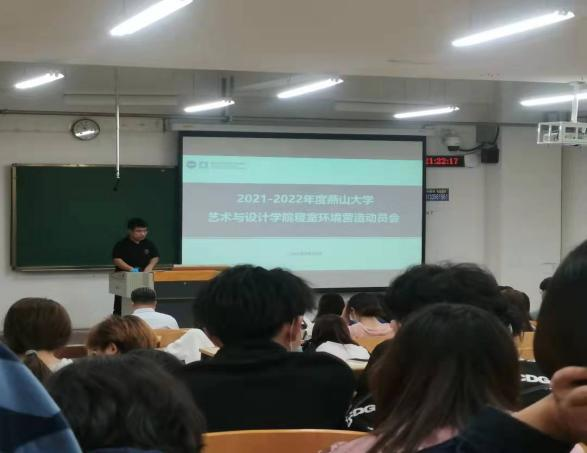 于在西五B101举行了艺术与设计寝室环境营造动员大会暨“文明寝室”创建启动会。学院党委副书记宁岩鹏、学院寝室文化与社区环境营造中心学生干部、各班级生活委员以及各年级寝室长参加会议。会议由辅导员盖鸿章主持。