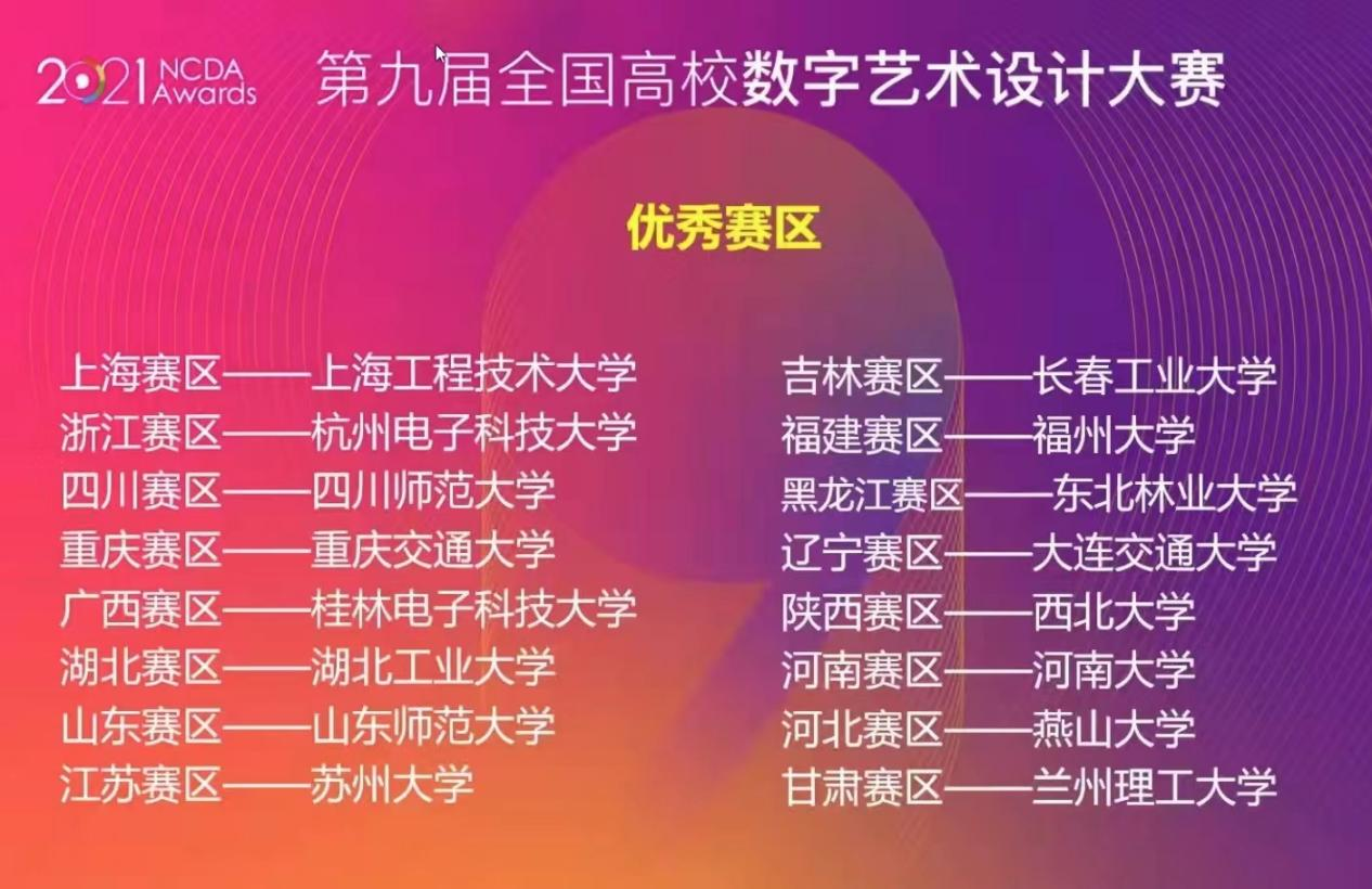 此外,该届赛事中我校还获得了全国总决赛杰出贡献奖获奖单位和优秀赛区奖,并荣膺全国高校数字艺术设计大赛全国首批12家数字艺术区块链双创基地。