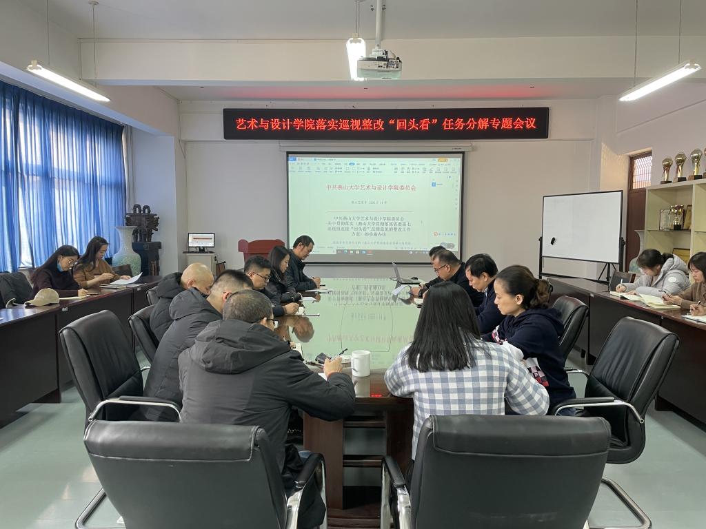 贯彻落实省委第七巡视组巡视“回头看”反馈意见的整改工作方案》任务分解专题会议,安排部署巡视整改工作。学院党委书记张文超,副院长赵琳,系部中心主任、副主任、教研秘书、科级秘书参加会议,会议由院长孙利主持。