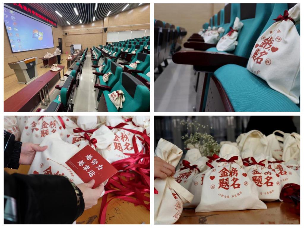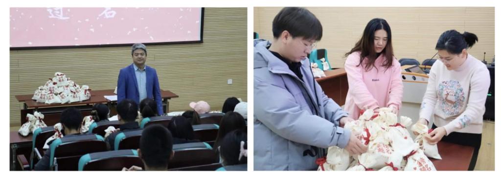 党委副书记宁岩鹏、辅导员冯丹红、丁旺龙前往协助布置会场;会上,敞开心扉和同学们进行谈心,交流备考经验,为同学们加油打气。宁岩鹏鼓励同学们放松心情,做好冲刺阶段的准备工作,以最佳的状态、满满的细心、耐心和信心完成研究生考试,预祝同学们取得好成绩。冯丹红温情关怀鼓励同学们坚持到底,并为同学们赠与了印有“考研必胜”字样的“福袋”。