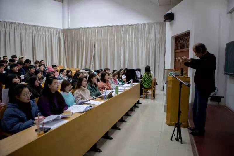在学术讲座中,郭文德老师分别从社会背景、地理位置、历史沿革、风土人情等角度对冀东民歌的产生与发展做了全方位的讲解与演唱分析,并对燕鸣合唱团本学期冀东民歌教学曲目进行了现场指导。两天的交流师生们兴趣浓厚,踊跃参与交流,对冀东民歌的演唱有了更精准的把握,对冀东音乐文化有了更深入的认识与理解,收获满满,并期待郭文德老师的再次莅临指导。