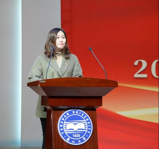 获奖学生代表李原慧、王雪洁、温丽媛分别作了发言,和大家分享了他们的学习经验、志愿服务经验和参与科创的经验并激励大家在未来的学习工作中勇于进取,开拓创新。