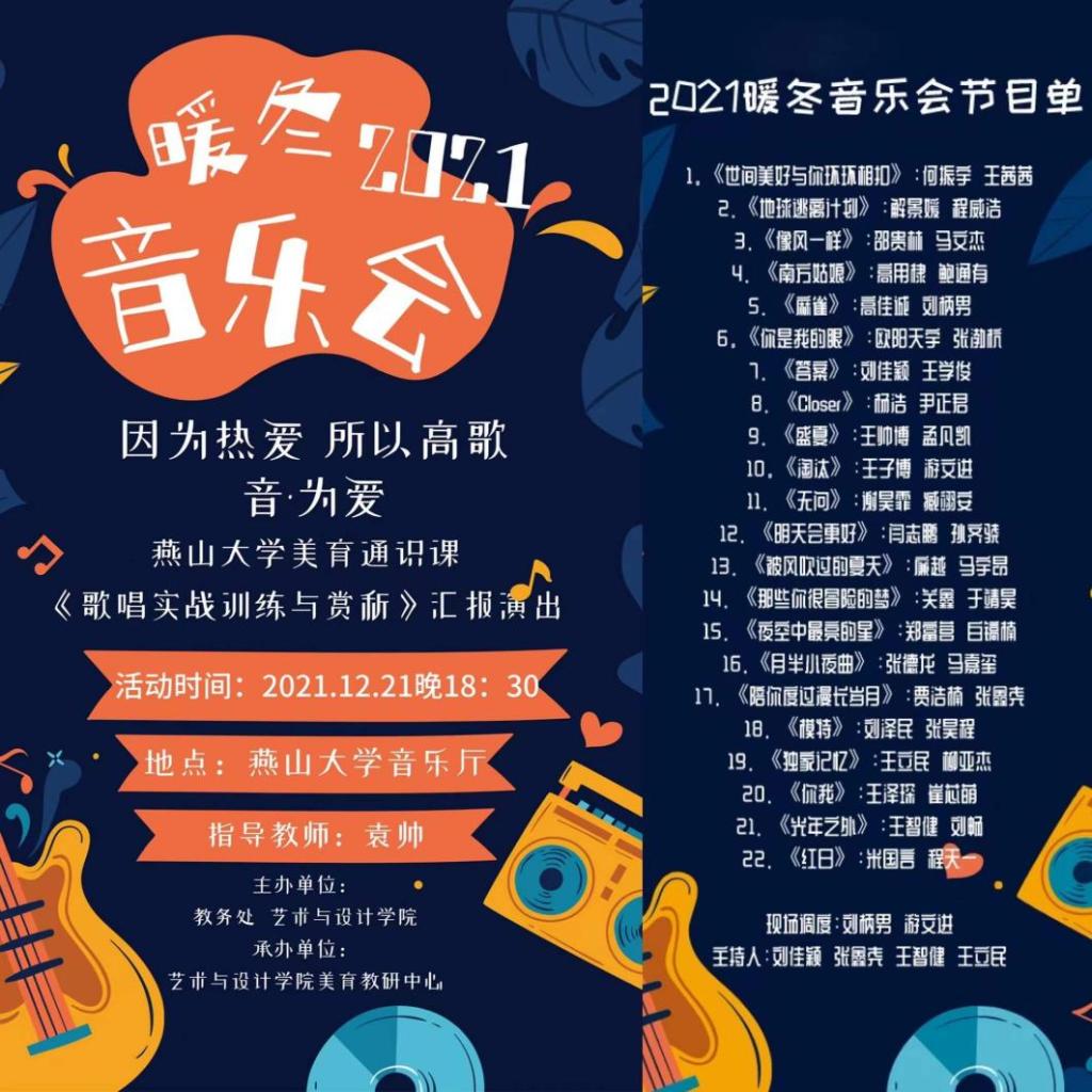 美育教研中心承办的美育通识课“暖冬音乐会”于2021年12月21日晚6:30于哔咔漫画