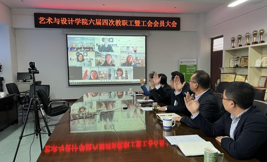 全体教职工以高度责任感和使命感,携手描绘学院发展蓝图,共同为实现学院“十四五”发展目标凝聚力量。按照疫情防控要求,学院班子成员在美术馆C305会议室主会场参加会议,全体教职工通过网络视频参加了会议。