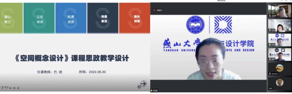 环境设计系巴玥老师以《空间概念设计》课程为例围绕课程介绍、学情分析、课程教材、教学内容与思政元素、实践教学与能力培养、思政故事与教学设计、教学评价与思政效果等方面来构建思政教学设计系统化设计思路、挖掘思政元素、搜集思政案例、明晰思政教学的实现途径。