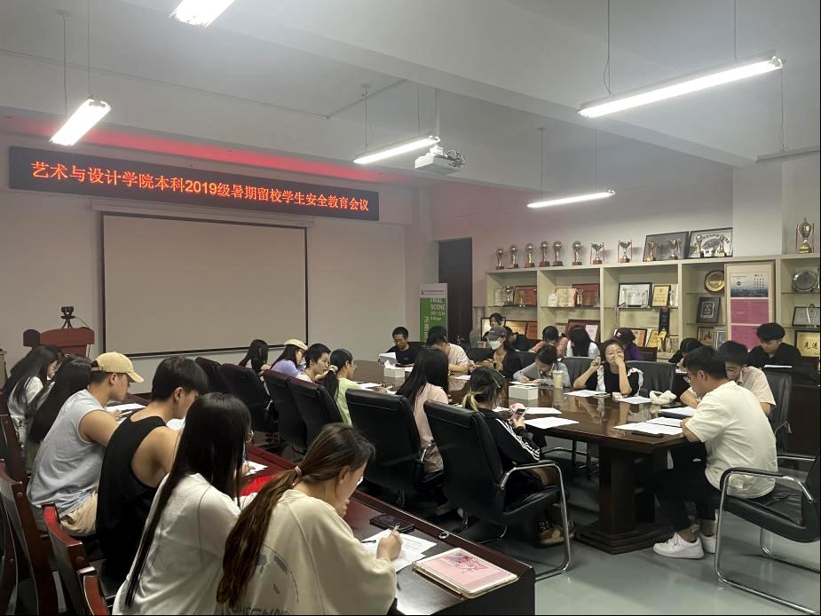 在美术馆C305会议室召开本科生2019级暑假留校学生安全教育会议。学院辅导员盖鸿章和全体暑期留校学生参加会议。