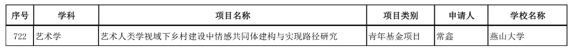 2022年度教育部人文社会科学研究艺术学项目立项名单