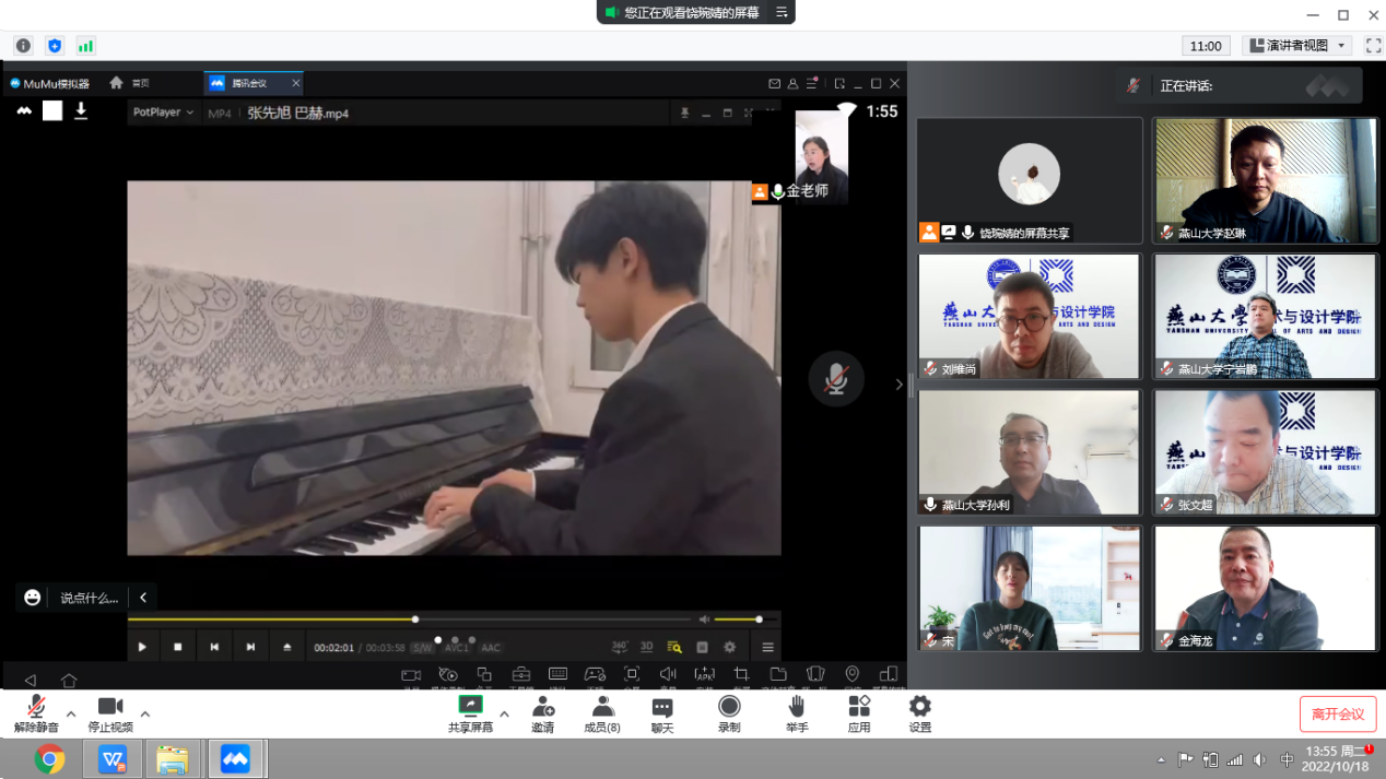 开展本学期第二次集中线上教学专项检查。院长孙利、党委书记张文超、副院长赵琳、副院长刘维尚、党委副书记宁岩鹏等学院领导班子成员,特邀教务处金海龙处长深入课堂,开展线上听课督导活动,本次听课覆盖了音乐表演、舞蹈表演、环境设计和工业设计4个专业,8门专业课程。