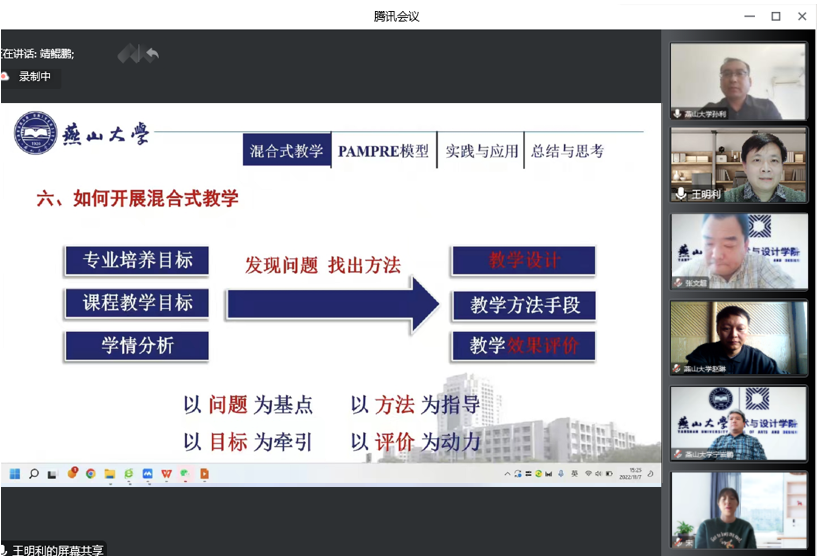 为落实教育部要求,大力推进学院线上线下混合式教学方法改革,引导、激励教师基于在线课程采用多元化教学模式开展教学,提升课程教学质量,根据学校统一部署,2022年11月7日,学院邀请理学院副院长王明利教授分享线上线下混合式教学的优秀经验,本次培训会通过腾讯会议的形式开展,学院全体教师参加,培训会由副院长赵琳主持。