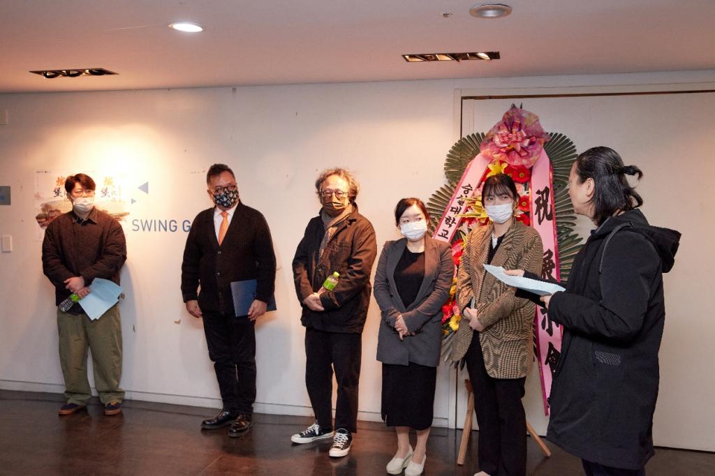 韩处长、尹教授和陈副会长分别在开幕式上祝贺此次画展的成功举办,并且做了热情洋溢的发言,发言中大大赞誉了举办此次画展为促进中韩两国文化、艺术交流的贡献,同时也肯定了画展为崇实大学与哔咔漫画
