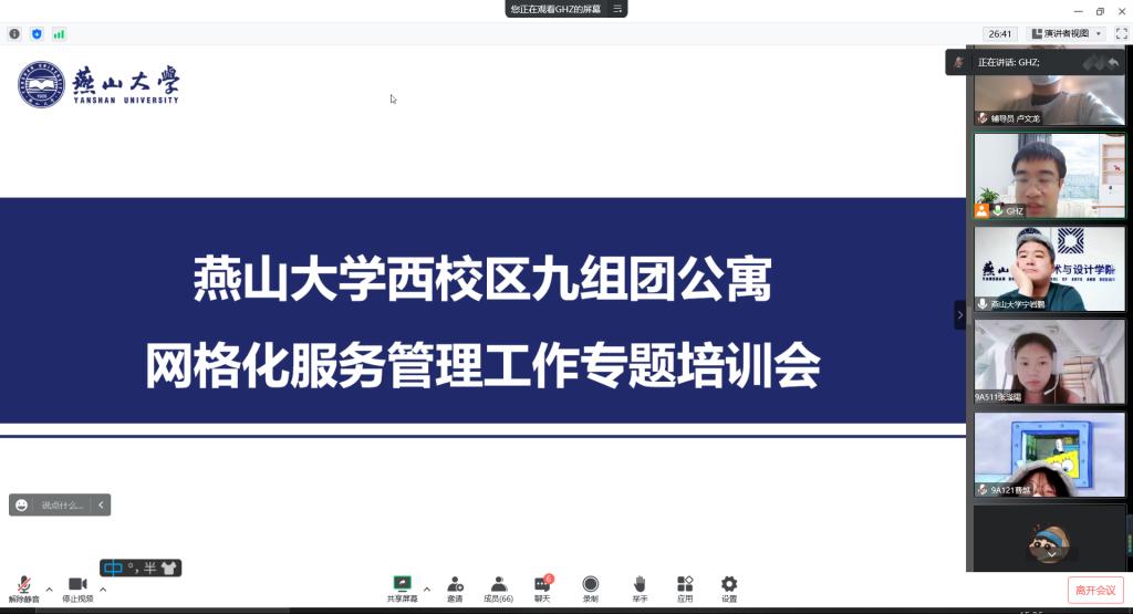 会上,盖鸿章介绍了西校区九组团公寓学生居住现状、楼宇单元层级网格划分、网络化服务管理工作队伍建设、网格员工作内容等。希望每个同学提高工作意识,共筑疫情防控防火墙。
