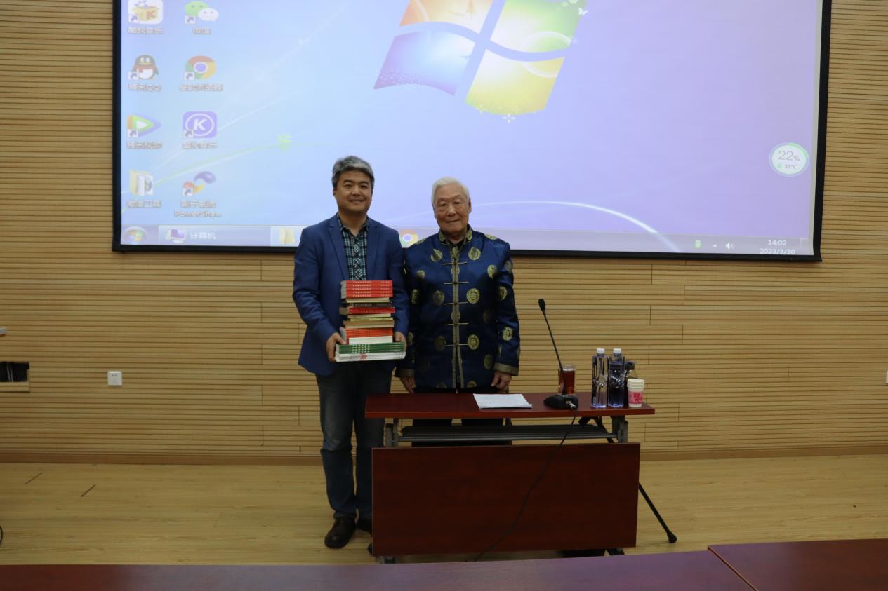 音乐馆B105举行《冀东民歌的影响和艺术价值》学术讲座,学院近200名师生参与聆听。讲座开始前举行了赠书仪式,刘荣德先生将自己毕生撰写并出版的专著赠予学院,学院党委副书记宁岩鹏接受赠书。
