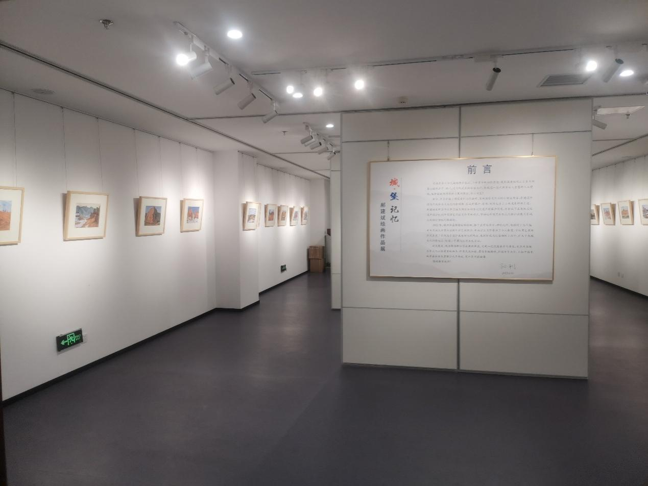 本次展览共展出我院郝建斌老师在韩国访学期间创作的几十幅有关长城与古堡内容的水彩艺术作品,画面表现了长城与古堡这一类伟大人文景观的壮美与深沉内涵,每一幅作品都倾注了作者对祖国山河深深的眷恋与爱意。郝建斌老师多年从事长城及周边古村落文化遗产的保护研究,坚持把利用艺术形式的保护拓展为长城文化保护传承的新路径,并实际践行此理念,创作了很多以长城为母题的雕塑和绘画作品。