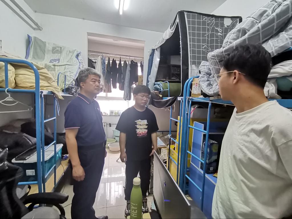 在学生宿舍的,全体辅导员分组深入各个年级宿舍进行检查,重点对暑期留校学生宿舍用电安全、寝室卫生、在校秩序等进行了提示教育。对暑期离校学生宿舍进行了关电、关窗、消防安全等方面的检查。