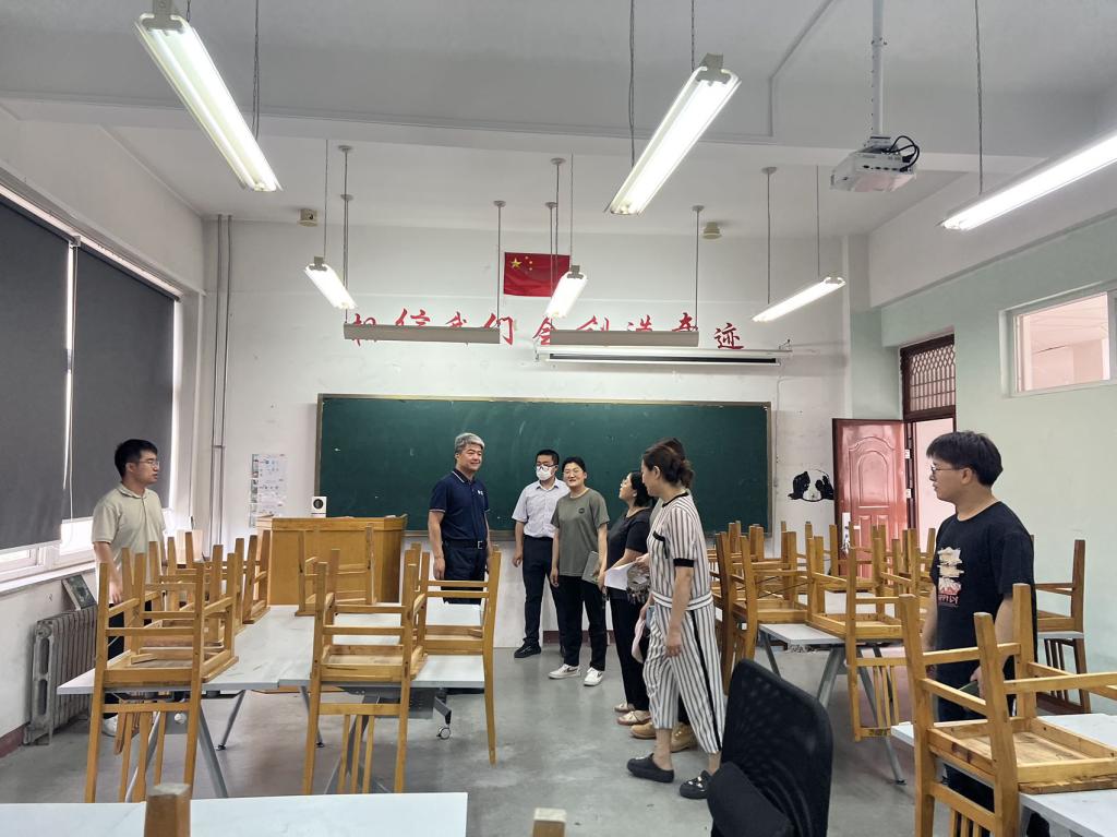 在学院专业教室,全体辅导员对专业教室设施安全、卫生状况等检查,对专业教室用电安全、门窗安全、消防安全等进行了排查,对检查中发现的安全隐患进行及时整改。检查整改后,辅导员对专业教室粘贴封条进行暑期封闭管理。