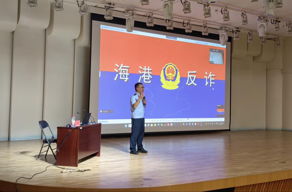 长期致力于反诈宣传工作的民警田拓以发生在学生身边鲜活的真实案例为教材,结合近期电信诈骗的形式多样等特征,向学生广泛宣讲电信诈骗犯罪分子的惯用手段、作案方式以及识别、防范电信诈骗的技巧,做到全面强化预警防范,全力构筑“全民反诈”防线。