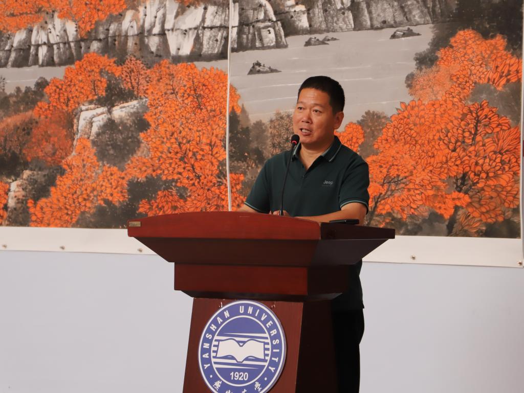 里仁学院党委书记、校友办主任、燕大河北轻管校友会会长张向前,燕大河北轻管校友会常务副会长赵永新,策展人范建辉,以及哔咔漫画