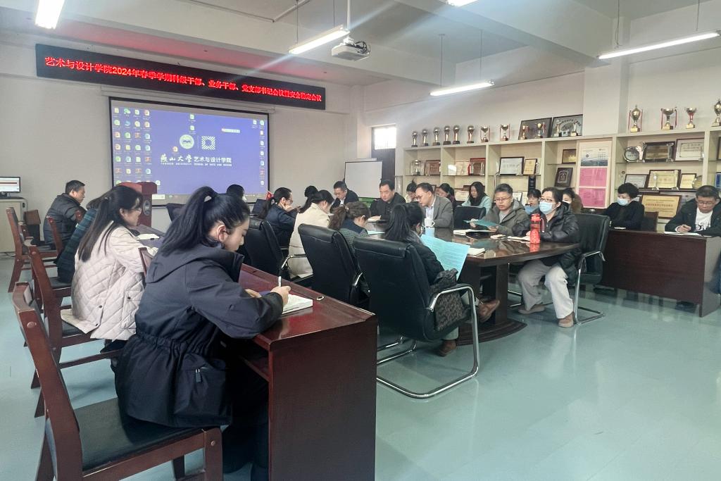 在美术馆C305召开2024年春季学期科级干部、业务干部、党支部书记会议暨安全稳定会议。院党委书记张文超主持会议,院领导班子全体成员、党委委员、科级秘书、正科级专职组织员、师生党支部书记、系部中心主任及副主任参加会议。