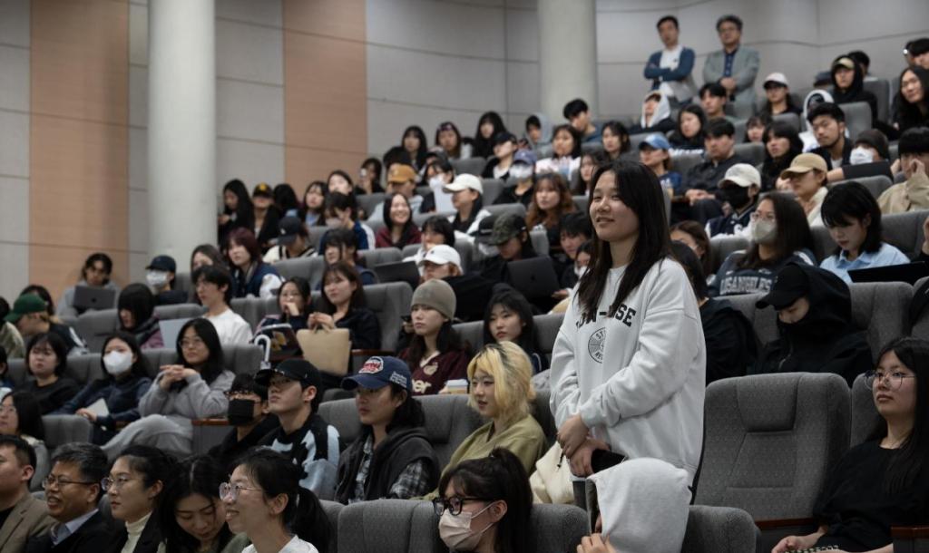 院长赵琳、副院长刘维尚带队,赴韩国开展了系列学术交流活动。4月15日下午,应加图立大学邀请,赵琳院长做题为《师父的课:中国传统优秀文化与现代艺术设计》专题报告。报告由加图立大学社会科学学院闽炳云教授主持,社会科学学院院长南宗勋教授、广告传播系主任张泽元教授、设计学院院长梁禎恩教授、音乐学院金瑾弘教授及300余名师生参加了此次专题报告,李京美老师担任报告翻译。