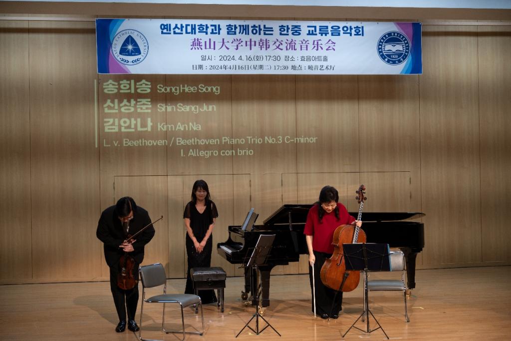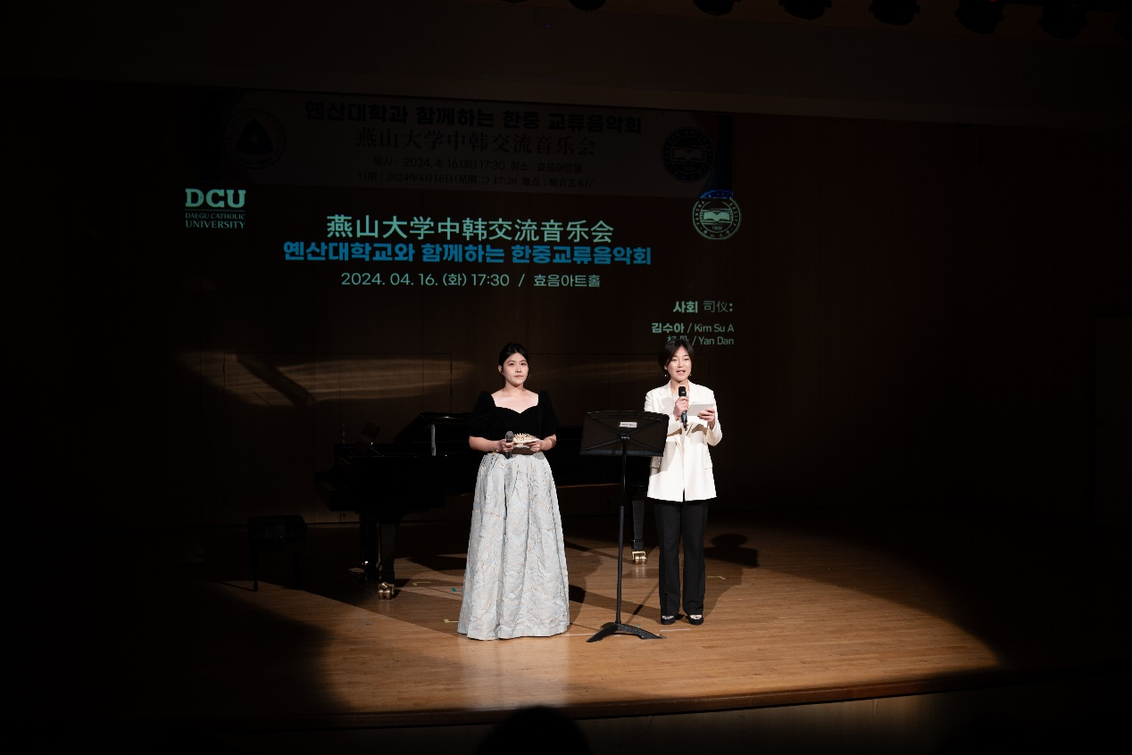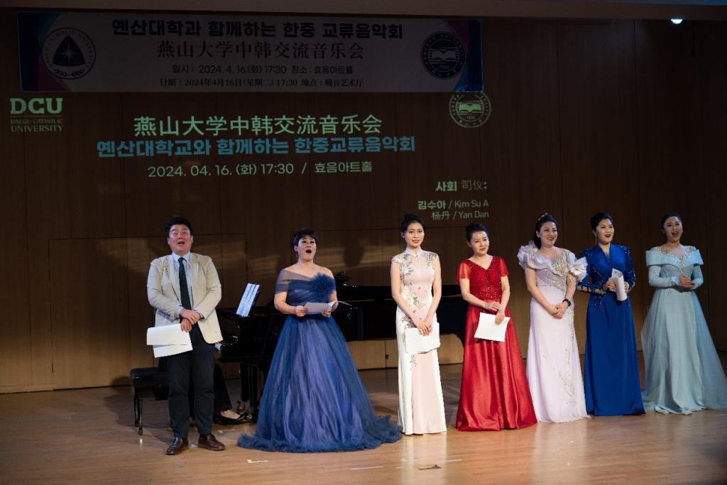 院长赵琳、副院长刘维尚带队,赴韩国开展了系列学术交流活动。并于4月16日17:30在韩国大邱加图立大学孝音艺术厅成功举办中韩交流音乐会。韩国大邱加图立大学校长成汉基教授及相关部门负责人出席了音乐会,并在演出结束后与演员及中方访问团合影留念。