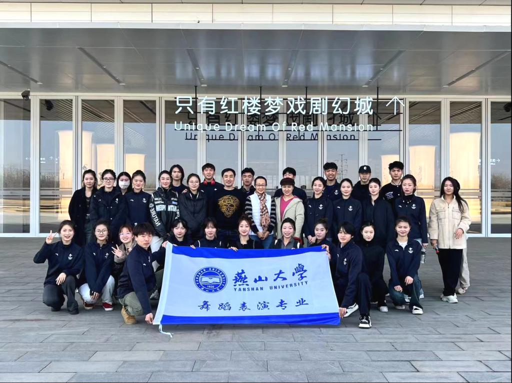 此次艺术实践育人项目共分为两个阶段,第一阶段为实地观摩、校企交流环节。2024年3月12日至3月15日,舞蹈表演专业负责人孟丹娜副教授带领专业青年教师及2021级全体本科生、研究生赴廊坊《只有红楼梦·戏剧幻城》做交流学习,全体师生观摩了“只有红楼梦”系列演出项目,并在观演后与企业管理、创作人员进行了深入的专业实践交流。