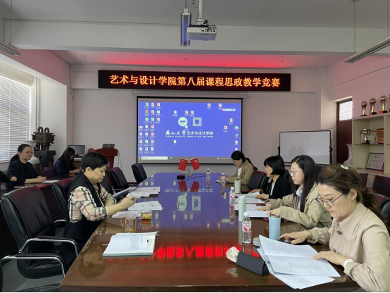 第八届课程思政教学竞赛在美术馆C305举行。学院各系部中心的5位教师参加了本次竞赛,比赛邀请马克思主义学院李小东老师、经济管理学院李凌雁老师和我院工业设计系、环境设计系、视觉传达设计系、艺术基础教研部的负责人担任评委,学院部分教师代表观摩了比赛。