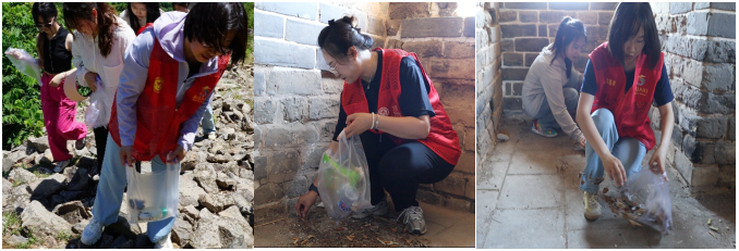 长城是中华民族自尊自信自立自强的精神体现和热爱和平的象征。师生们带着研究问题“长城村落如何社会创新?”对长城进行了第三次田野考察,发现近年来,来往板厂峪长城参观的人数不断增多,随处乱扔垃圾的现象也日渐凸显,同学们发现在长城这一课题创“新”前,要先去寻“旧”,有的时候,保护好“旧”就是创新,无论景区内外,长城都需要被保护,尤其是马克思主义学院杜利英老师更是出于对保护长城的最朴素的情感开始自发在明长城-板厂峪段杨来楼西侧捡垃圾,同学们也被老师们热爱长城的行为感召,纷纷开始维护长城的清洁,并劝阻在长城上随意刻画的行为。