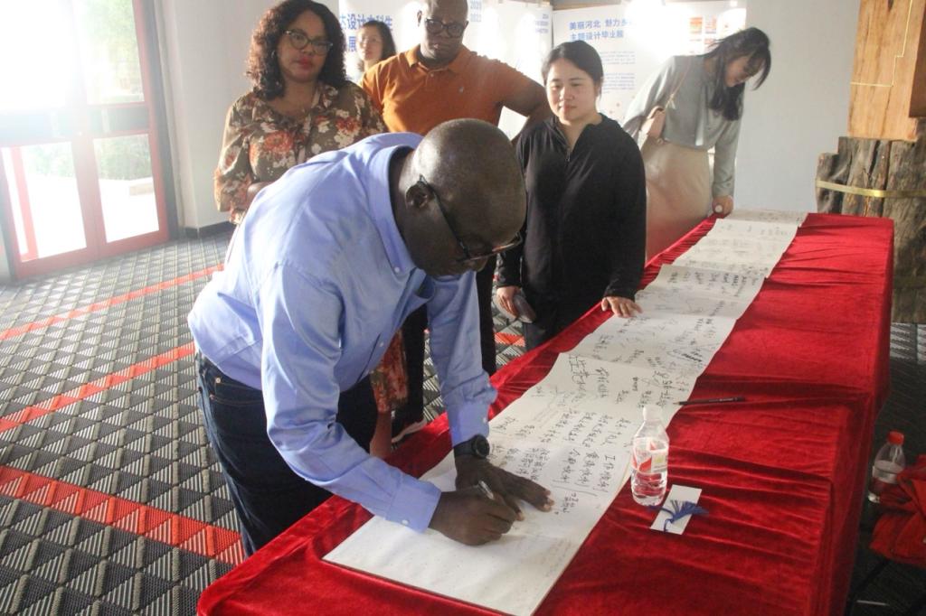 7月4日下午博茨瓦纳国际科技大学副校长、孔子学院博方理事长以利沙·圣曼格(ElishaShemang),商业与职业发展学院院长、孔子学院博方理事会成员帕特丽霞·马克佩(Patricia Makepe)一行受邀参加2024届毕业生作品设计展,国际合作处处长朱红、汉语组负责人马文慧陪同参加。本次活动旨在加强两校的国际合作与交流,增进双方在艺术实践和科研领域的了解与合作。