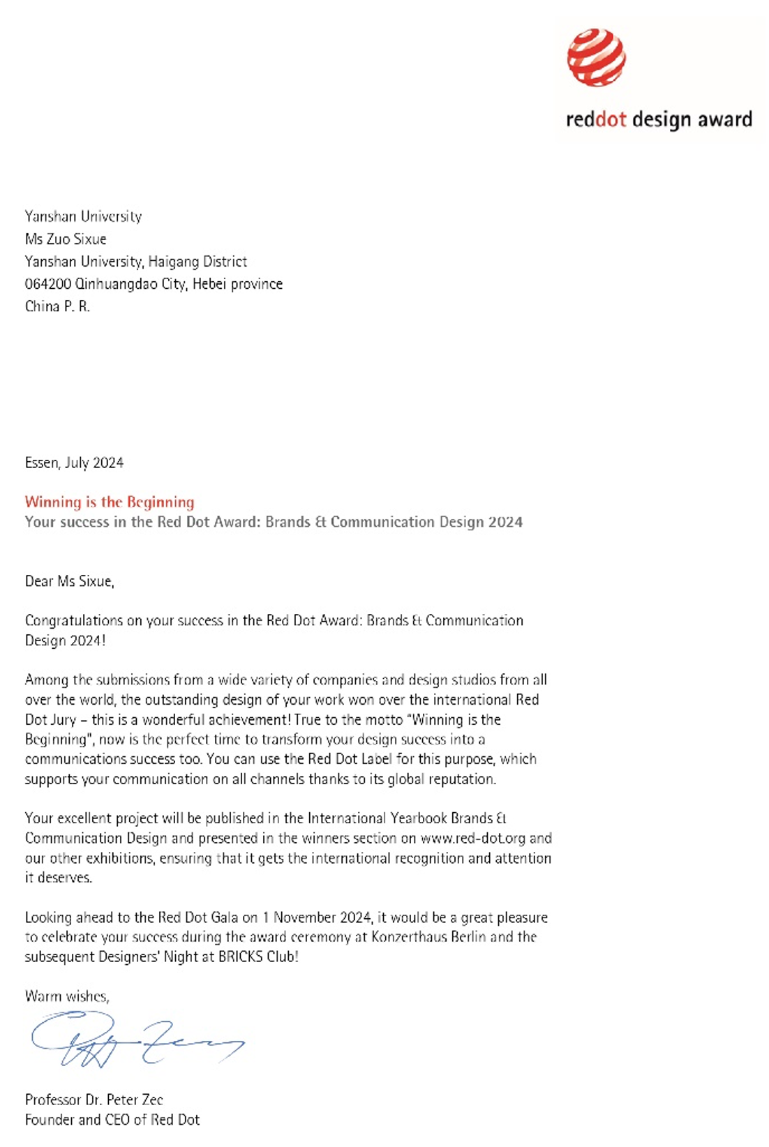 获奖代表赴新加坡领奖并与红点奖创始人彼得·扎克合影