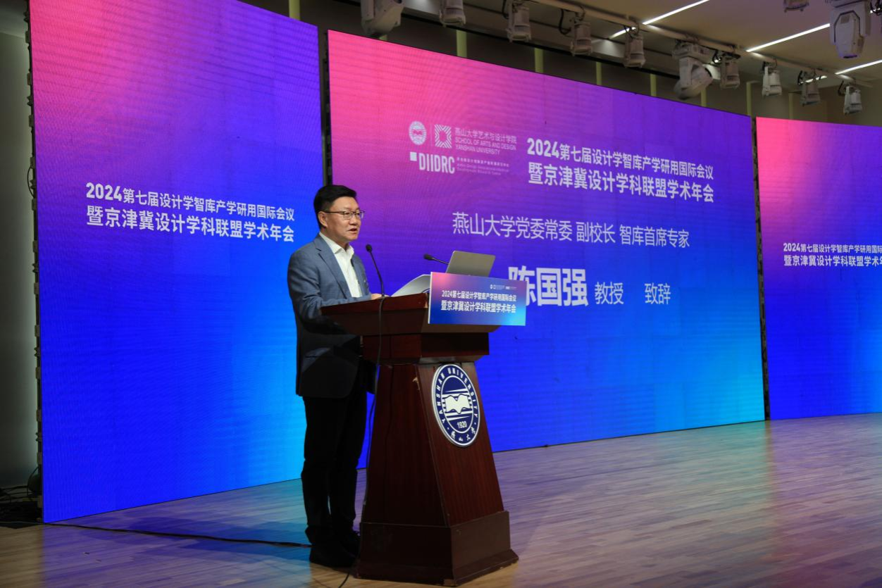 陈国强在致辞中指出,本次会议聚焦智能设计与新质产业,围绕设计学交叉学科建设、新时代设计学高质量发展等问题展开交流和探讨,旨在共同推动产学研用深度融合,为新时代的设计教育和产业发展贡献力量。真诚期盼通过此次会议汇聚各方智慧、激发创新思维,推动京津冀地区乃至全国的设计学科发展迈上新台阶。