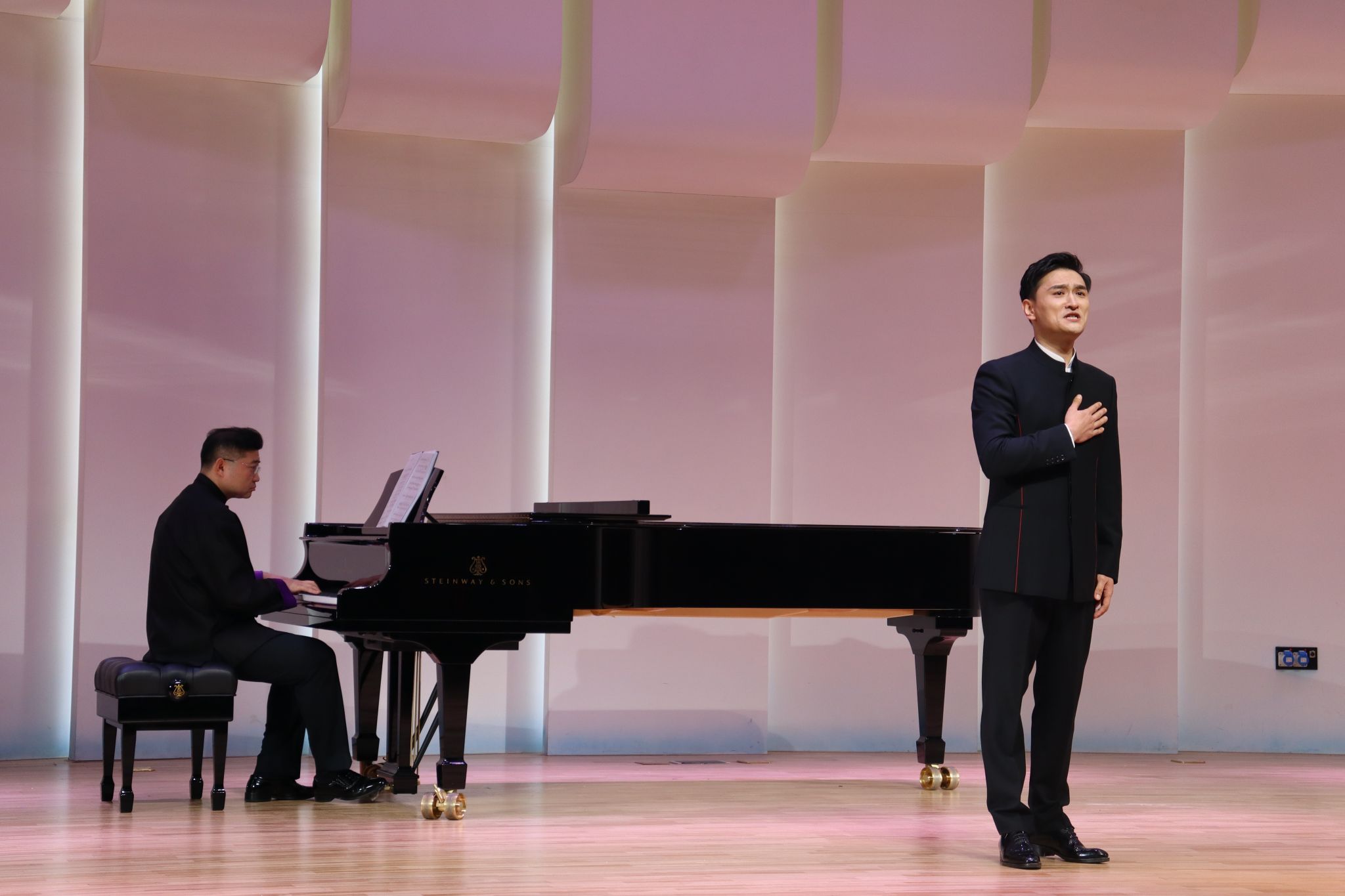 音乐会在苗族多声部民歌《芦笙场上》中拉开帷幕,古诗词歌曲《苏小小》、藏族风情的经典声乐作品《哈达似的白云》、“西北风”《屹梁梁上喊苍天》、京剧韵味的《新编挂红灯》、陕北民歌《一对对鸳鸯水上漂》等各具韵味的作品轮番呈现。中国音乐学院博士毕业生、中国铁路文工团青年男高音马小明,硕士研究生、曾获得深圳声乐季第一名的张群航,博士生研究生、北京歌剧舞剧院女高音吴梦雪,博士研究生、浙江音乐学院青年教师解本康等依次登场。经典的唱段,完美的唱腔,精彩的演绎使音乐会的气氛不断升温。董华教授在热烈的掌声中登台演唱新作品《一念如初》、创作歌曲《春风圆舞曲》将音乐会推向高潮。