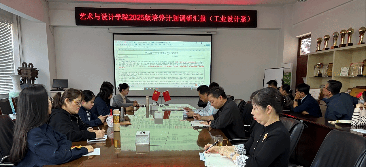 工业设计系在艺术馆C305召开2025版培养计划调研汇报暨研讨会。学院院长赵琳、党委书记张文超、教学副院长王年文出席会议,工业设计系全体教师参加。会议由工业设计系主任侯士江主持。