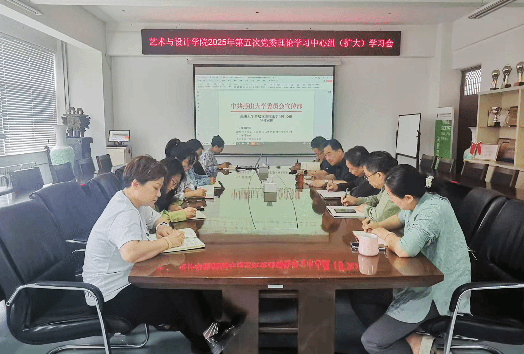 会上,与会人员认真研读了习近平总书记在《求是》杂志发表的重要文章《锲而不舍落实中央八项规定精神,以优良党风引领社风民风》,重温了习近平总书记1983年在正定工作时主持起草制定的《关于改进领导作风的几项规定》。集中学习了习近平总书记在河南考察时的重要讲话精神、《党政机关厉行节约反对浪费条例》、《党的十八大以来深入贯彻中央八项规定精神的成效和经验》和《八项规定改变中国》。传达学习了学校党委书记赵险峰在校党委理论学习第四次中心组学习会上的讲话精神。认真学习5月13日,中央层面深入贯彻中央八项规定精神学习教育工作专班会同中央纪委办公厅,公开通报河南省信阳市罗山县委原 常委、政法委原书记李献林,信阳市委政法委原常务副书记叶金广等10名干部在学习教育期间违规吃喝、严重违反中央八项规定的典型案例。院长赵琳、副书记宁岩鹏围绕主题作重点发言,其他成员交流学习体会。