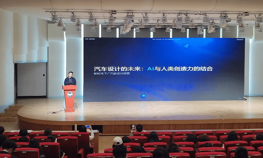 本次毕业设计作品展览期间,还特别邀请了国内知名企业广汽集团首席设计师陈奎文先生做了“AI时代下的设计哲学碰撞”主旨报告。