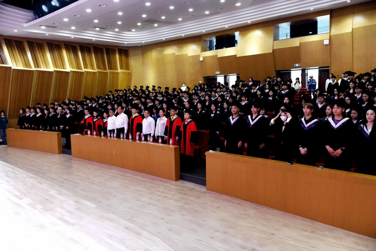 音乐厅隆重举行。学院领导班子成员、各系主任、教师代表、全体辅导员、2025届本科毕业生及部分学生家长共同见证了这一重要时刻。仪式由学院党委副书记宁岩鹏主持。